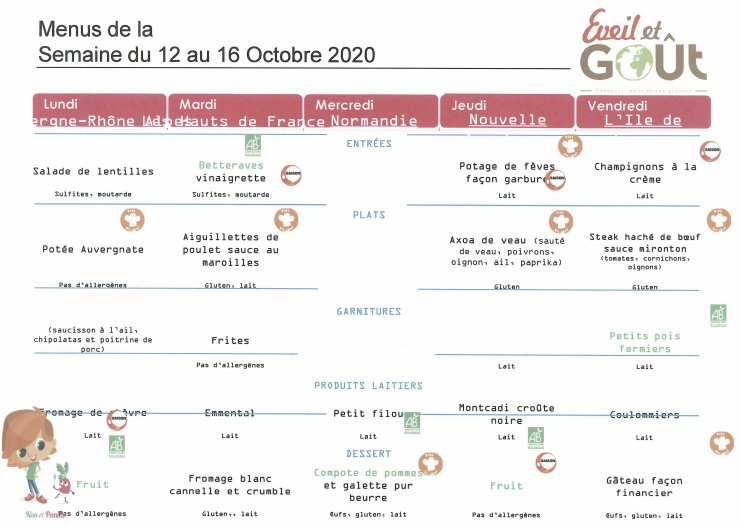 Menus octobre 2020