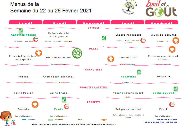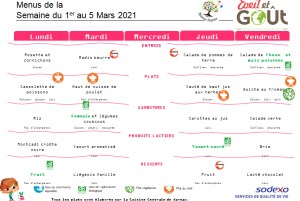 Menus février-mars 2021 9 février 2021, 4:30 pm Post navigation « INFO PORTES OUVERTES Remerciements »