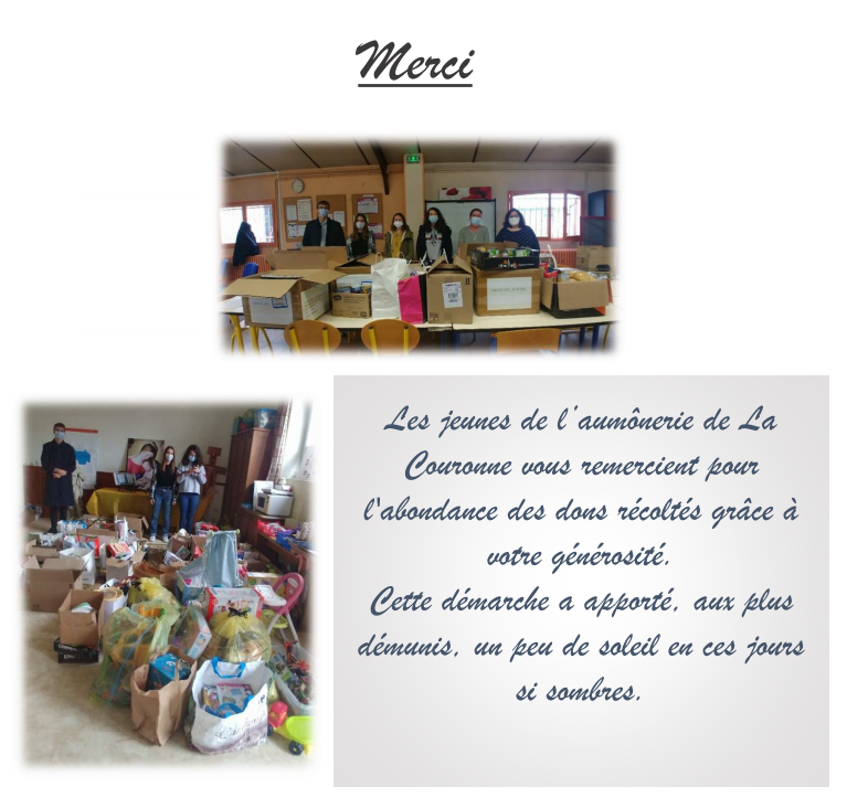 Remerciements 1 mars 2021, 12:45 pm Post navigation « Menus février-mars 2021 Dons petites couvertures »