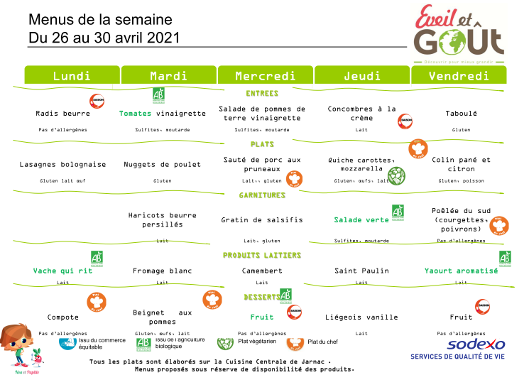 Menus fin Avril – Mai 2021 27 avril 2021, 11:01 am Post navigation « Menus Mars/ Avril Dates à ret. mai-juin 2021.pdf »