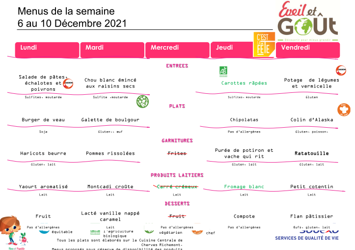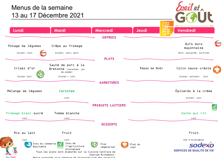 Menus de décembre