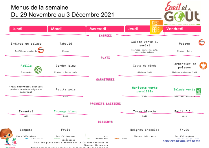 • Menus Cantine