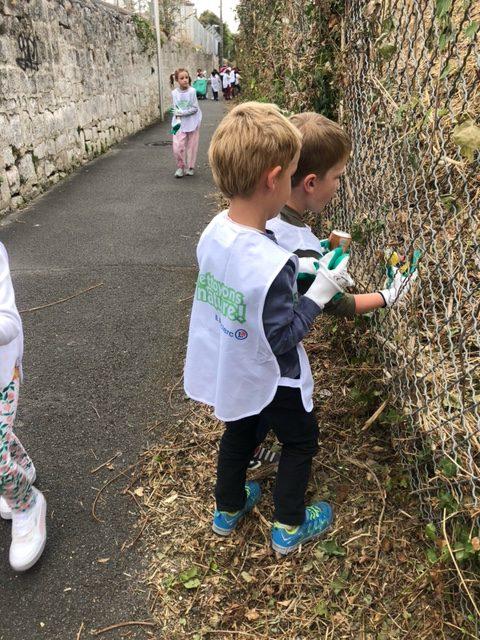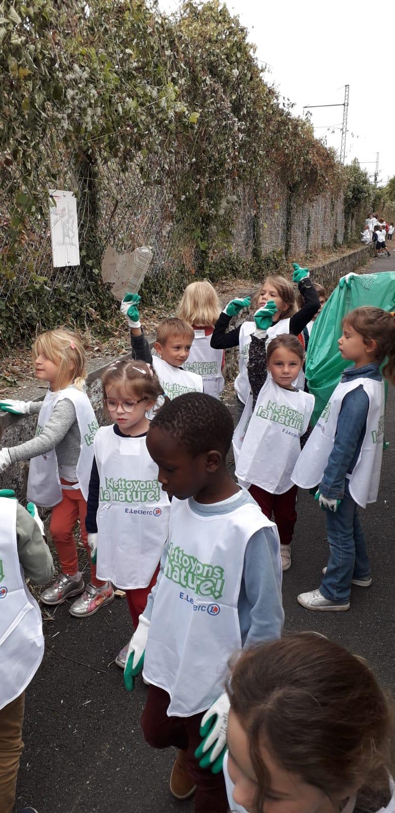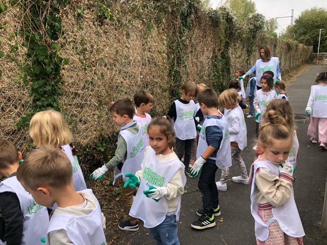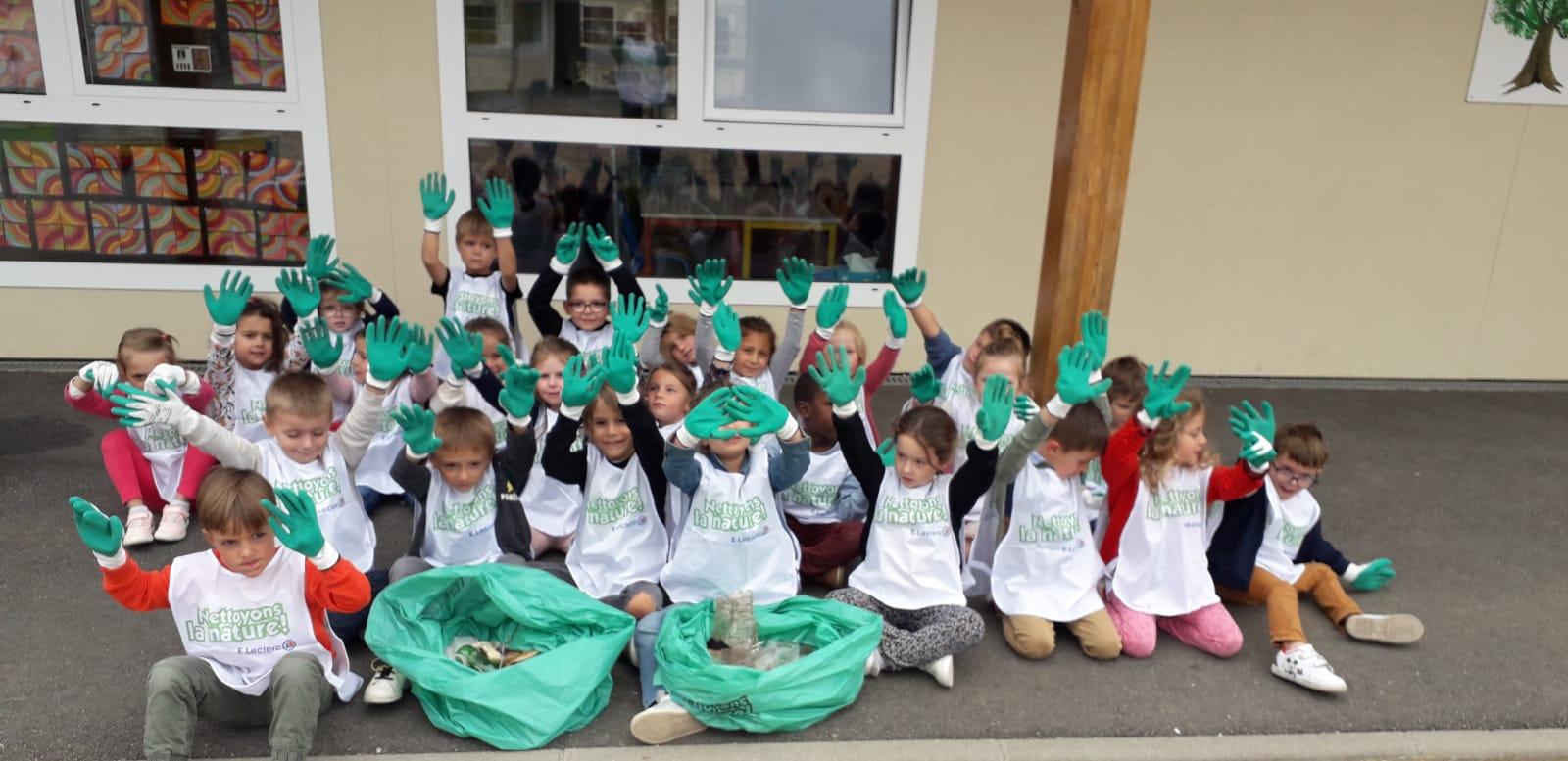 A l’occasion de l’opération « Nettoyons la Nature », les GS-CP ont oeuvré pour une nature plus propre. Chacun, paré d’une paire de gants et d’une chasuble, a pu agir en faveur de la préservation de l’environnement en ramassant et en triant les déchets autour de l’école.