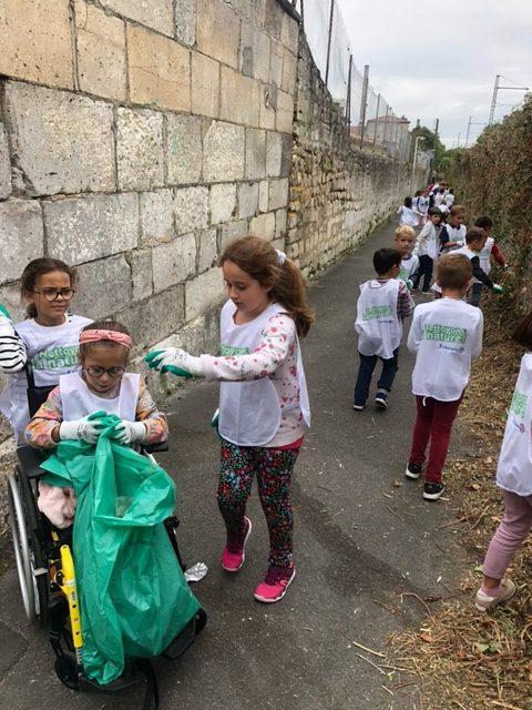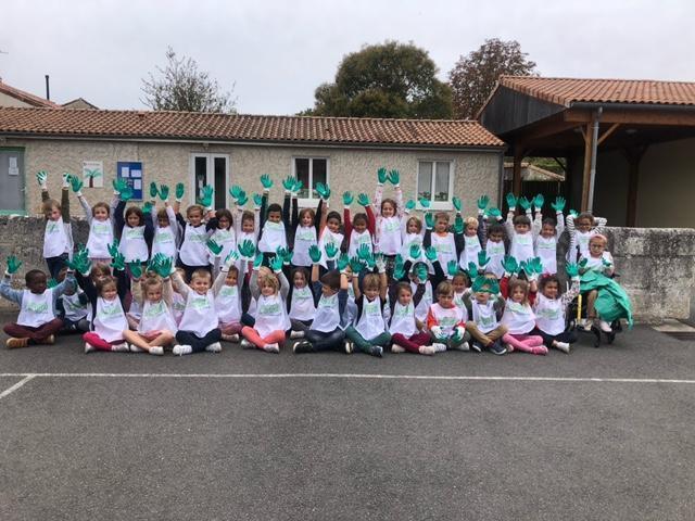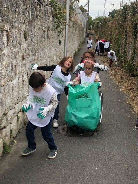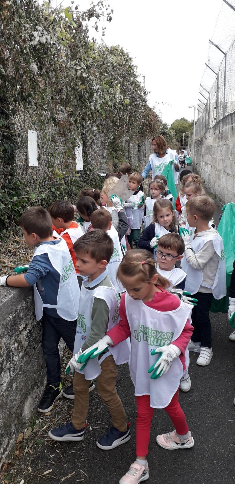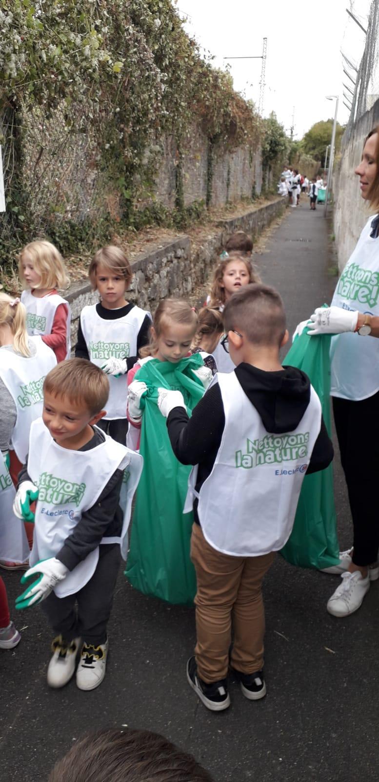A l’occasion de l’opération « Nettoyons la Nature », les GS-CP ont oeuvré pour une nature plus propre. Chacun, paré d’une paire de gants et d’une chasuble, a pu agir en faveur de la préservation de l’environnement en ramassant et en triant les déchets autour de l’école.