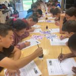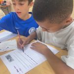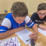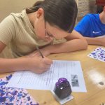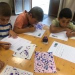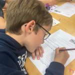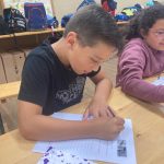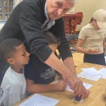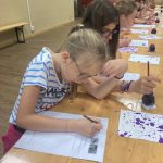 Après une explication de l’école d’autrefois avec la découverte des objets de l’époque, chacun s’est initié à l’écriture à la plume. De vrais écoliers du XXème siècle !