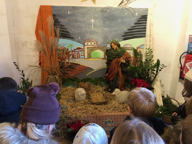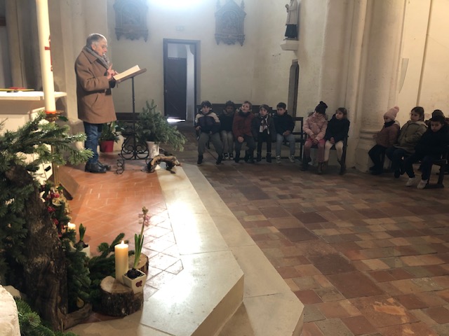 Ils ont pris un temps pour prier et chanter. La visite s’est terminée devant la crèche qui se prépare à recevoir Jésus.