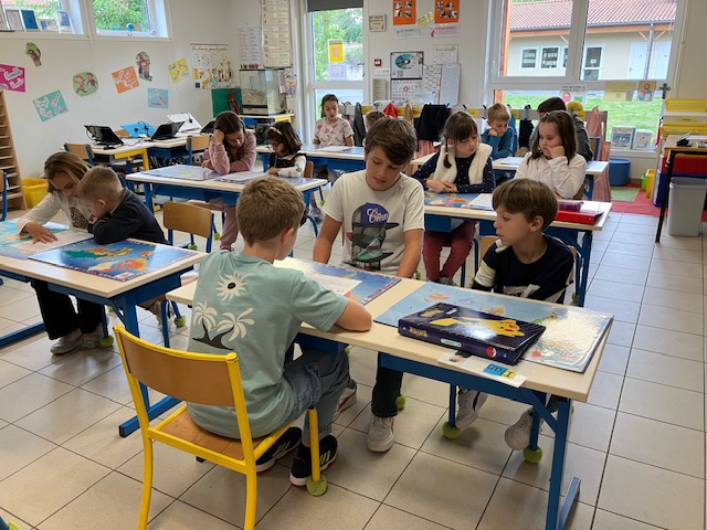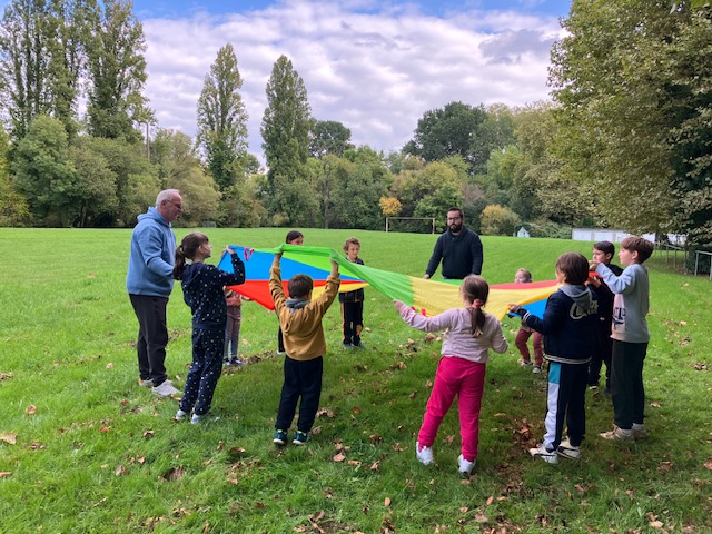La mise en place du parrainage CP/CM2 avec les explications du règlement de l’école par les plus grands en classe puis lors d’une rencontre sportive organisée par les enseignantes à l’espace Jean Billard. Merci à aux parents accompagnateurs pour leur aide précieuse !