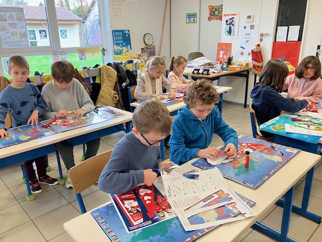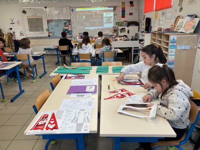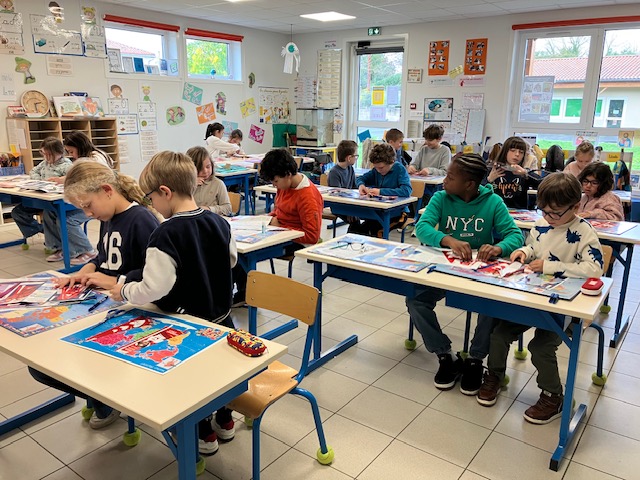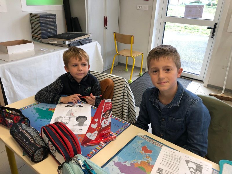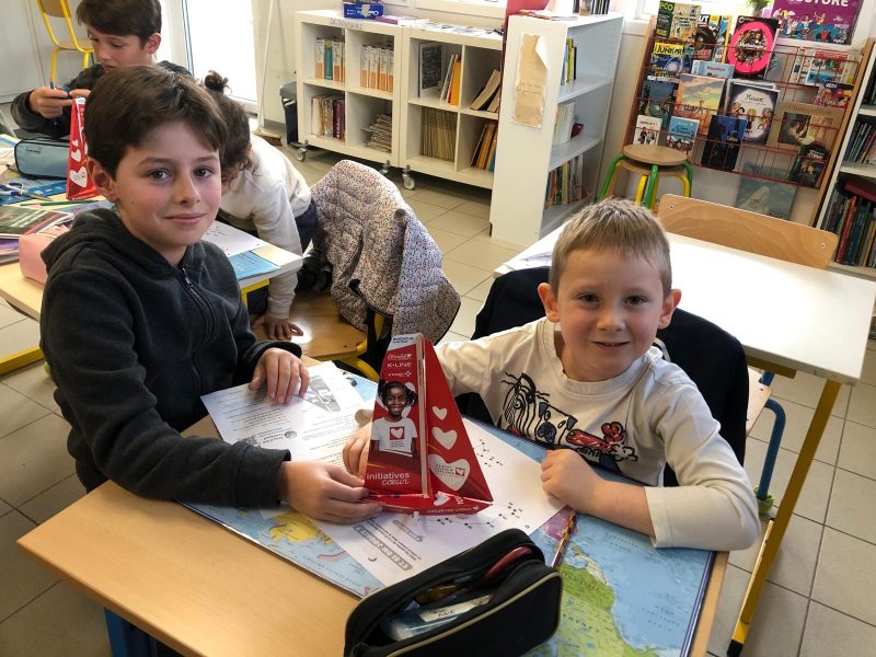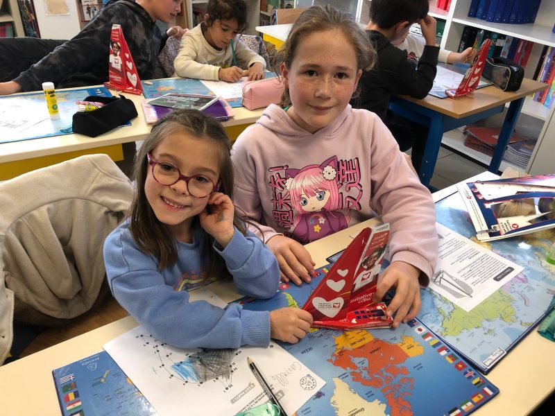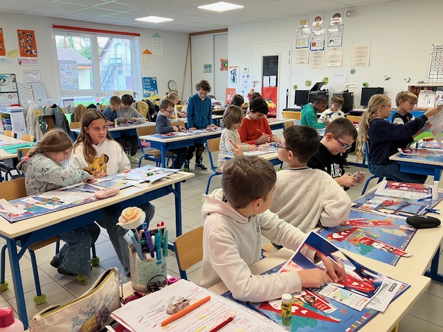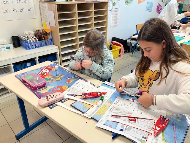 Ce projet a également permis de renforcer le parrainage entre les classes de CP et de CM2. Les élèves ont travaillé ensemble pour réaliser la maquette du bateau de Sam et Violette, un moment de patience et de coopération !